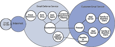 Our Email Defense Service has several layers of filtering technology that provide component-level integration within the messaging stream. A single event channel provides for universal and distributed configuration for enabling cross-filtering layer communication. Modules and components subscribe and publish related data through the event channel, which provides native application distribution capabilities. Modules may be upgraded and revised without service interruption.