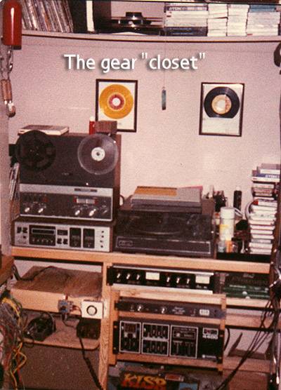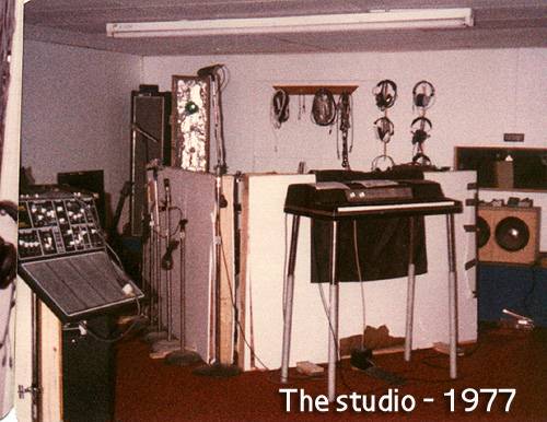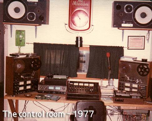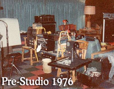 With a little gig money from "Goldrush" we bought several 4x8' sheets of white Styrofoam. Mark measured and cut the foam while Tony and Mary volunteered to clean up the grounds, sweep out the bird's nest's and wash the walls. I busied myself with building a patch bay, microphone panel and installing and connecting the recording gear. In about two weeks we were up and working. It was as crude as it gets, but it got the job done.