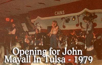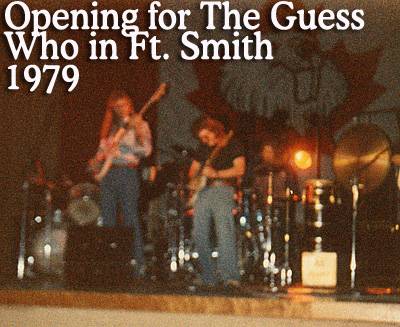 To keep the band busy during those slack times and to keep them from getting depressed each time I received another rejection letter from a major label, I scouted for nearby concert promoters who could use a good opening act for their concerts. We even expanded the band format to include a second drummer. On several of our songs I played guitar, which meant for some tunes we had three guitar players and for other tunes we either had two drummers or a percussion player. We were a very strong act. Sometimes a bit too strong! We had an occasion in 1979 to open for John Mayall in Oklahoma. The first night, in OKC, we were so strong that Mayall had a hard time controlling the audience with his laid back blues music after we had them all worked up into a frenzy with our straight out rock and roll set. The next night when we opened for him at Cain's Ballroom in Tulsa, Mayall had changed his set to start out with higher energy tunes. We also opened for The Guess Who in Ft. Smith at the Municipal Auditorium. We had more gear than the Guess Who, including a 40" and 30" gong behind our drum kits. Mark had a large Peavey stack while Rob preferred a small amp and miked it through the PA. Mary at that time had a Hammond and a Poly MOOG. Our drummers during those times were Dave Swegan and Mike Bauss.