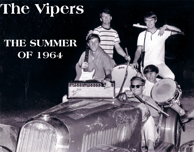 Also, after graduating HS I joined a local rock and roll band in 1964, made up of some of my childhood pals. In a couple of years were had established a fan base consisting of the entire youth of Mountain Home, because back then there wasn't anything else to do. It was just what you did back then, and during football season we would put signs on every car in the stadium parking lot, "Dance Tonight at Armory - The Vipers". That's all it took. The gigs we played at the armory or at the legion hut were legendary to those who lived it. It carried over after I moved back home in the mid 70's and started my recording studio. People remembered me from grade school� from the band�. And just from growing up here, so that my showing up at any reunion didn't seem out of the ordinary.